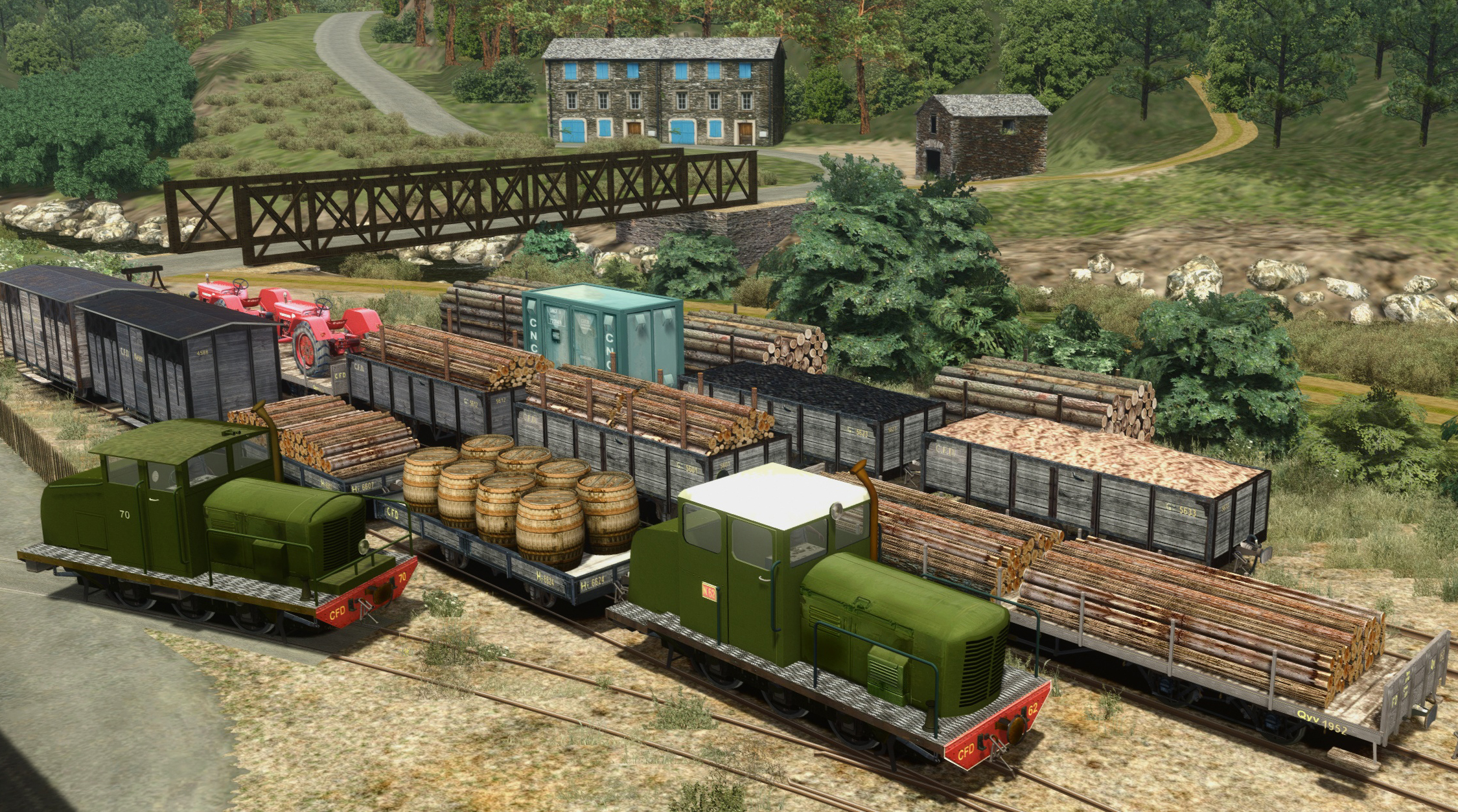 Locotracteur 3 essieux #62 et #70 des CFD et wagons marchandises associés/CFD 3 axles diesel shunter and associated freight wagons